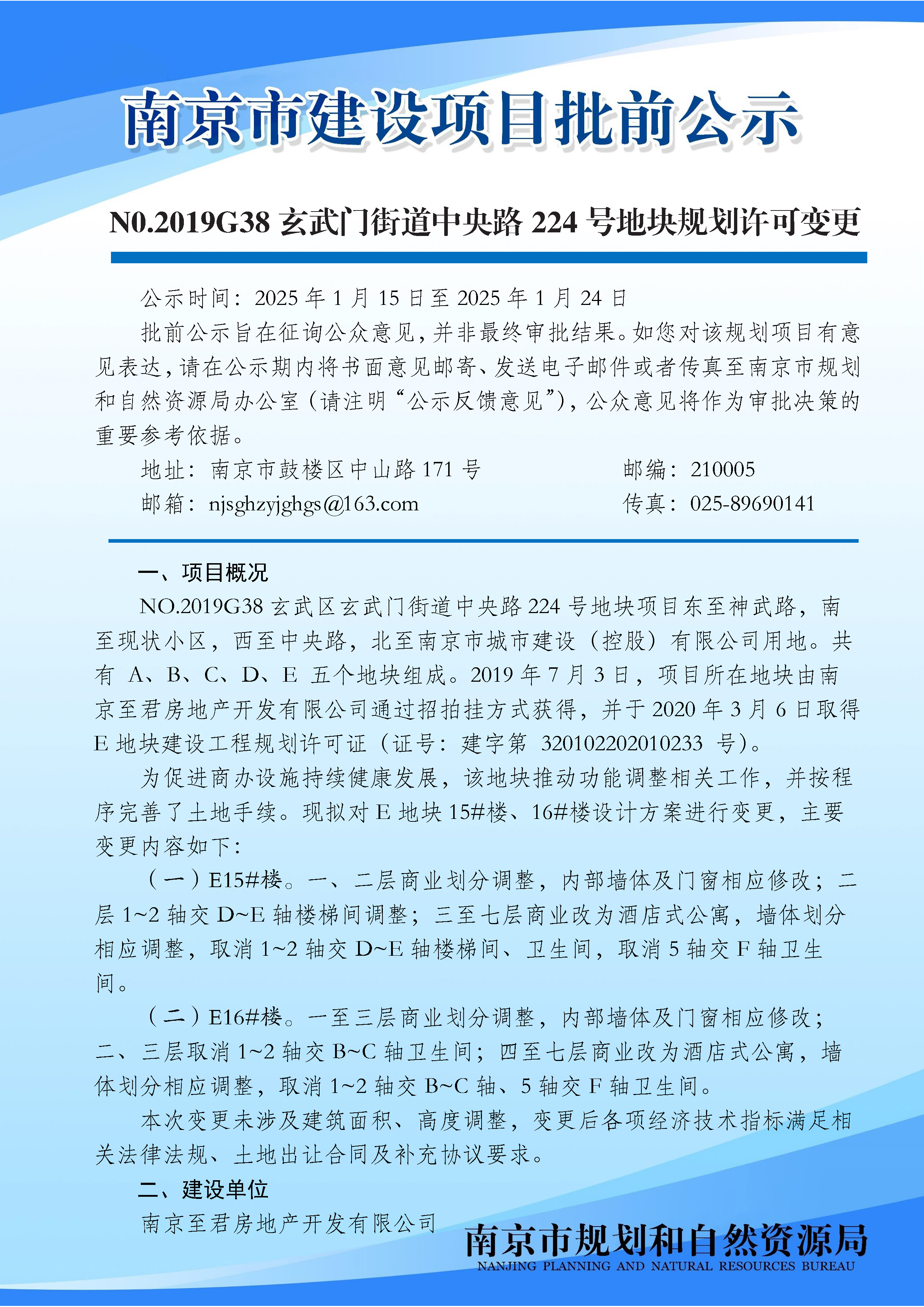 N0.2019G38玄武门街道中央路224号地块规划许可变更批前公示