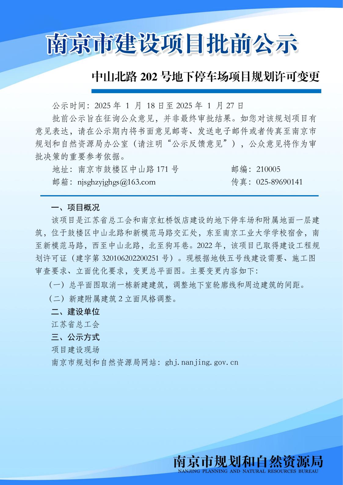中山北路202号地下停车场项目规划许可变更批前公示