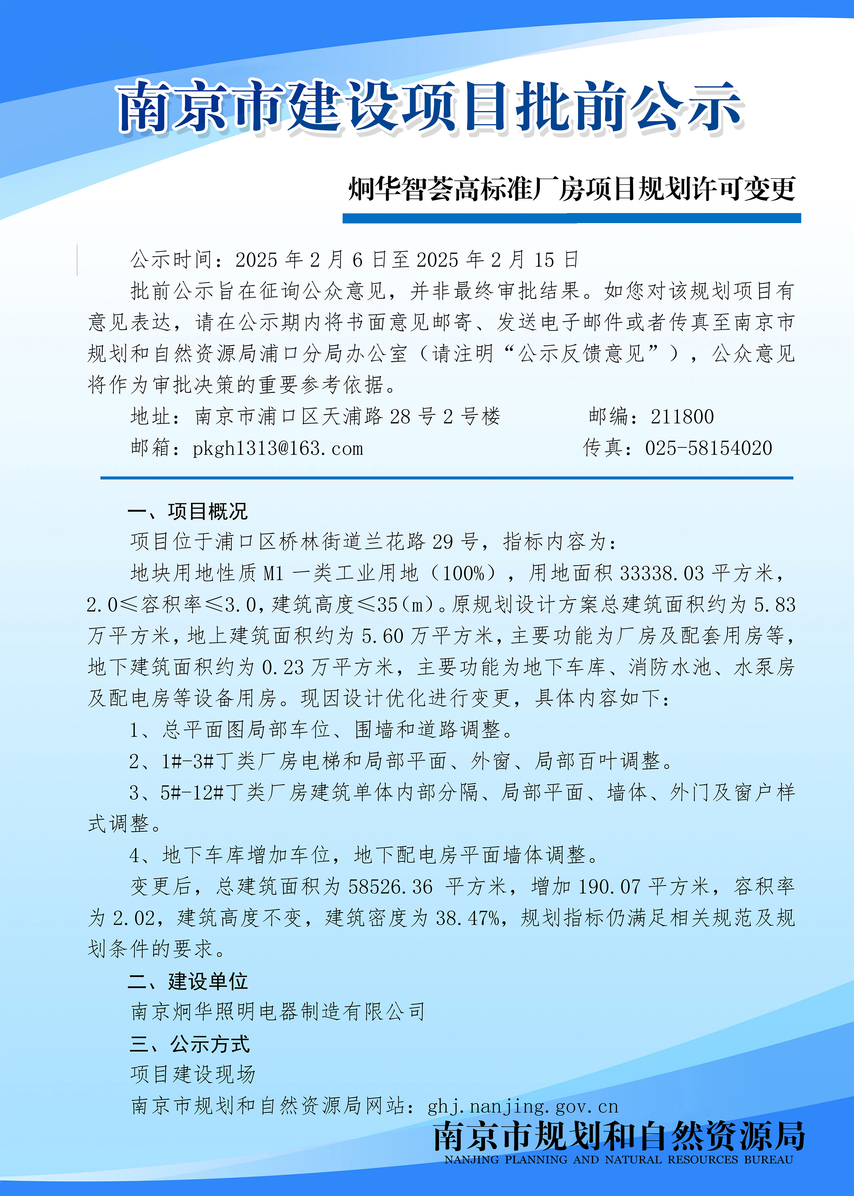 炯华智荟高标准厂房项目规划许可变更批前公示