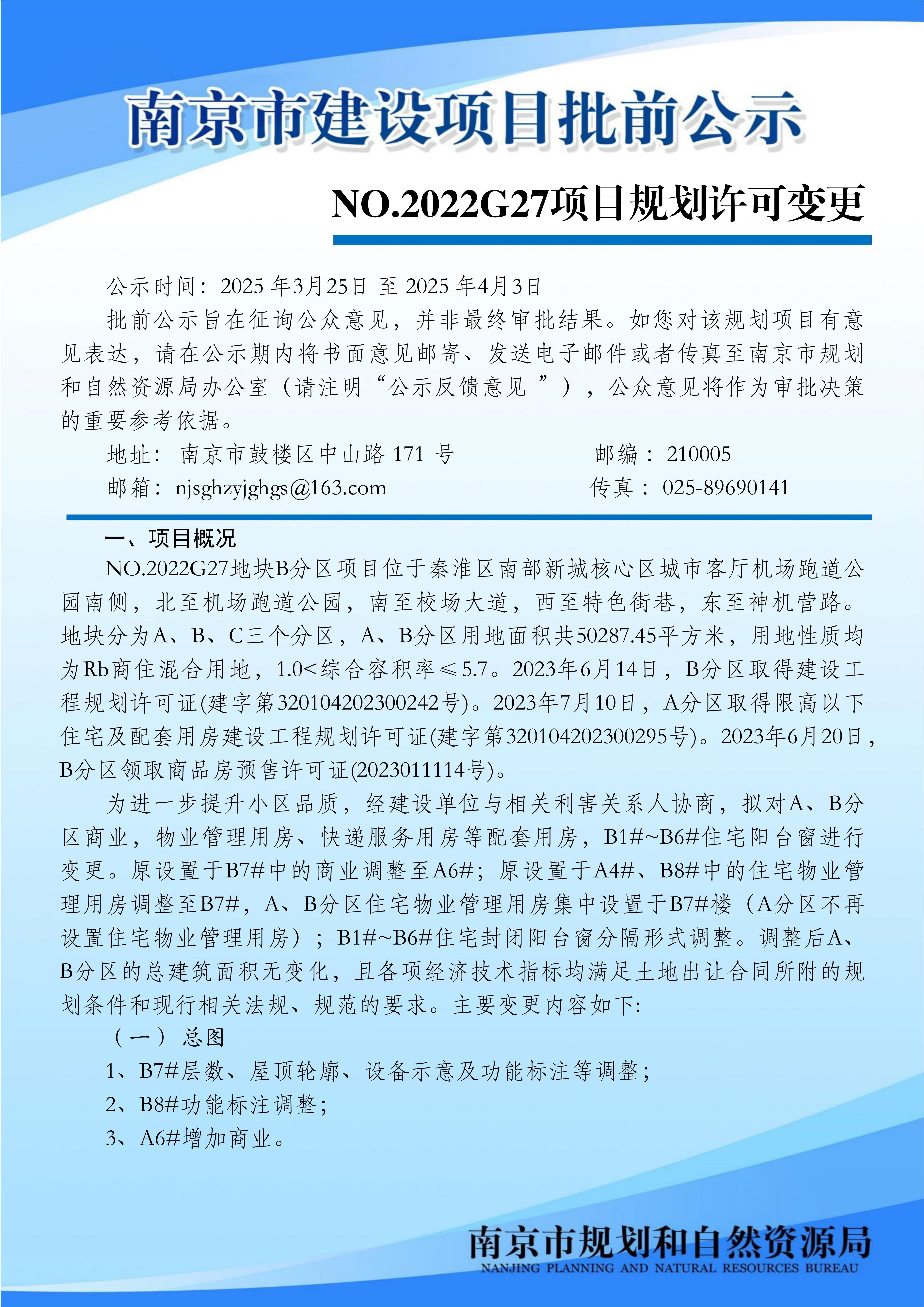 NO.2022G27项目规划许可变更批前公示