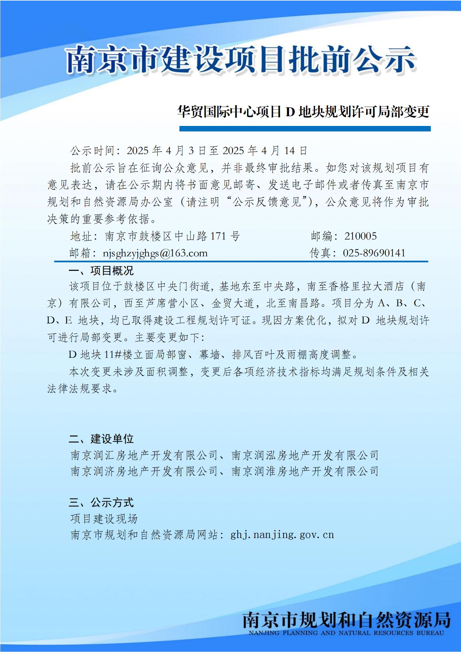 华贸国际中心项目D地块规划许可局部变更批前公示