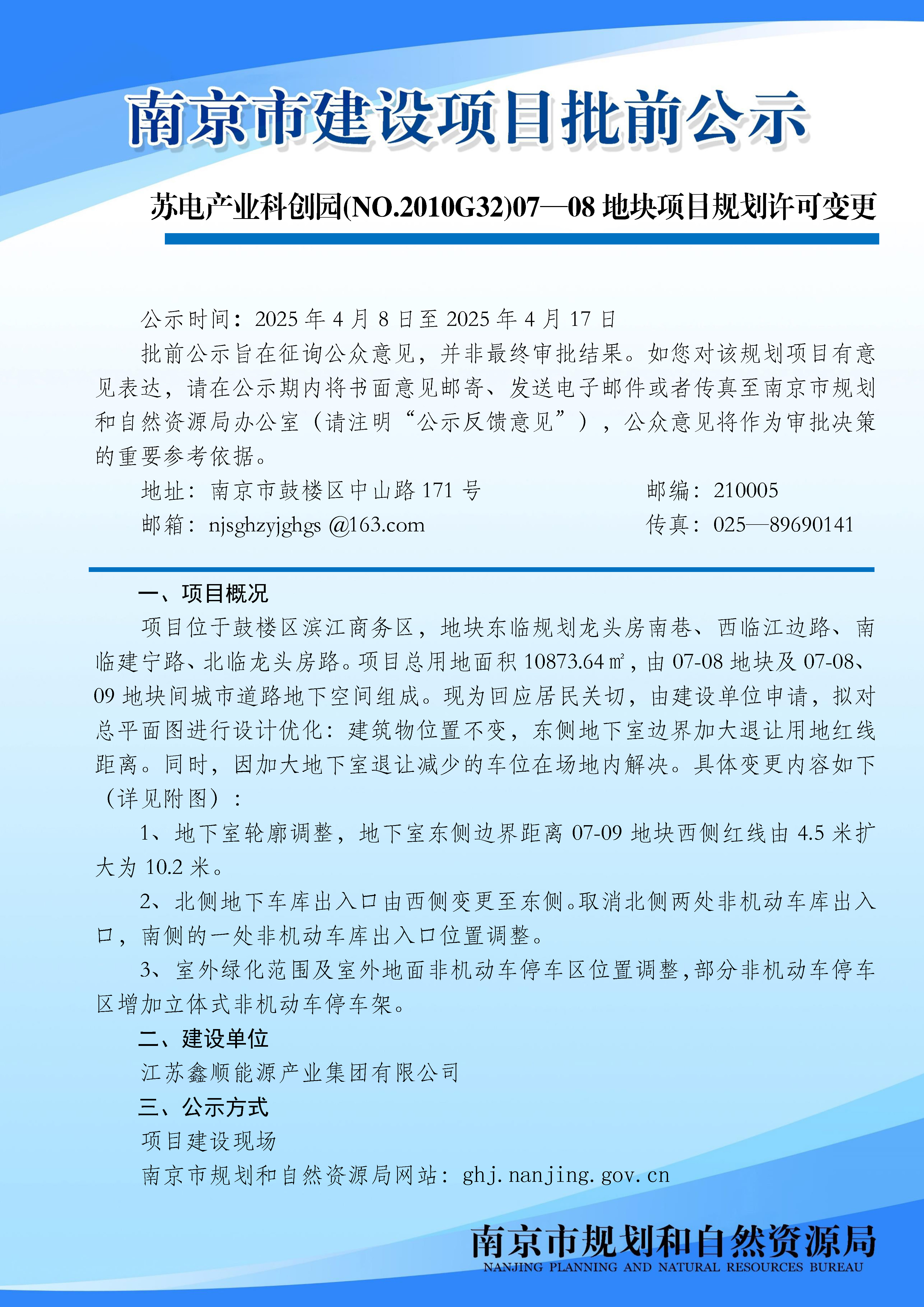 苏电产业科创园(NO.2010G32)07-08地块项目规划许可变更批前公示