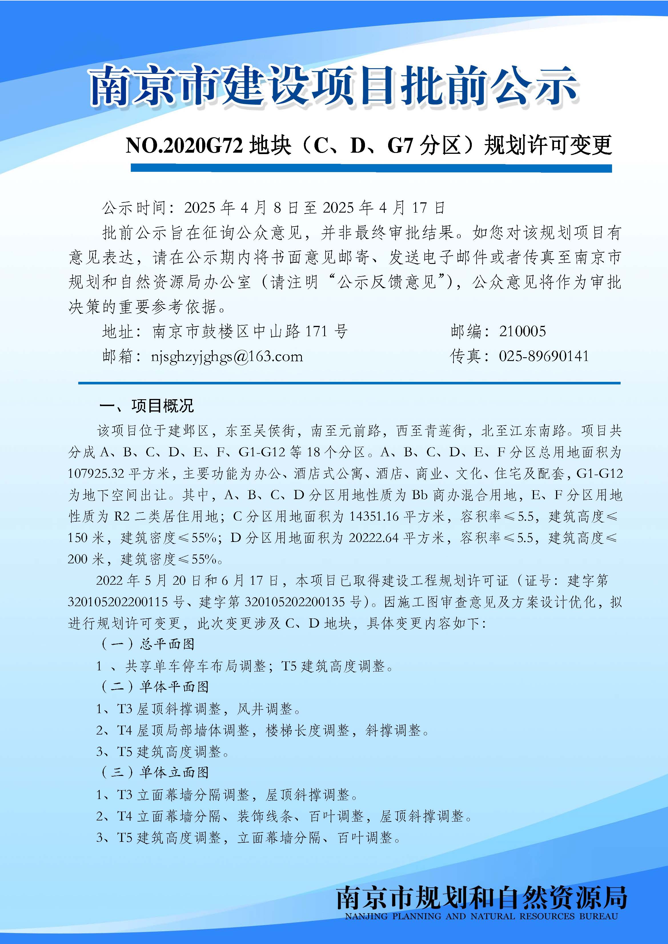 NO.2020G72地块(C、D、G7分区)规划许可变更批前公示