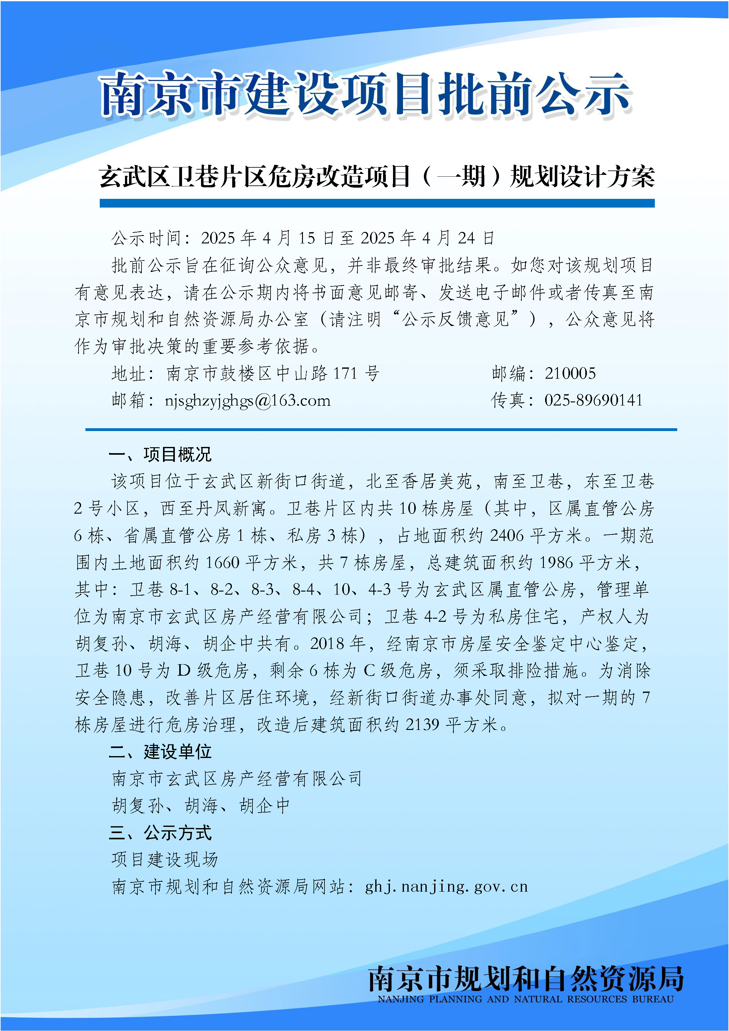 玄武区卫巷片区危房改造项目(一期)规划设计方案批前公示
