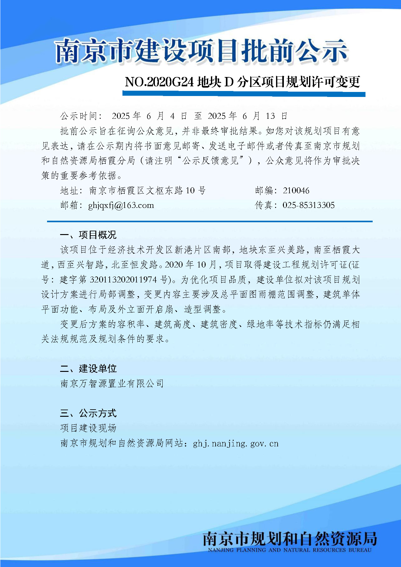 NO.2020G24地块D分区项目规划许可变更批前公示