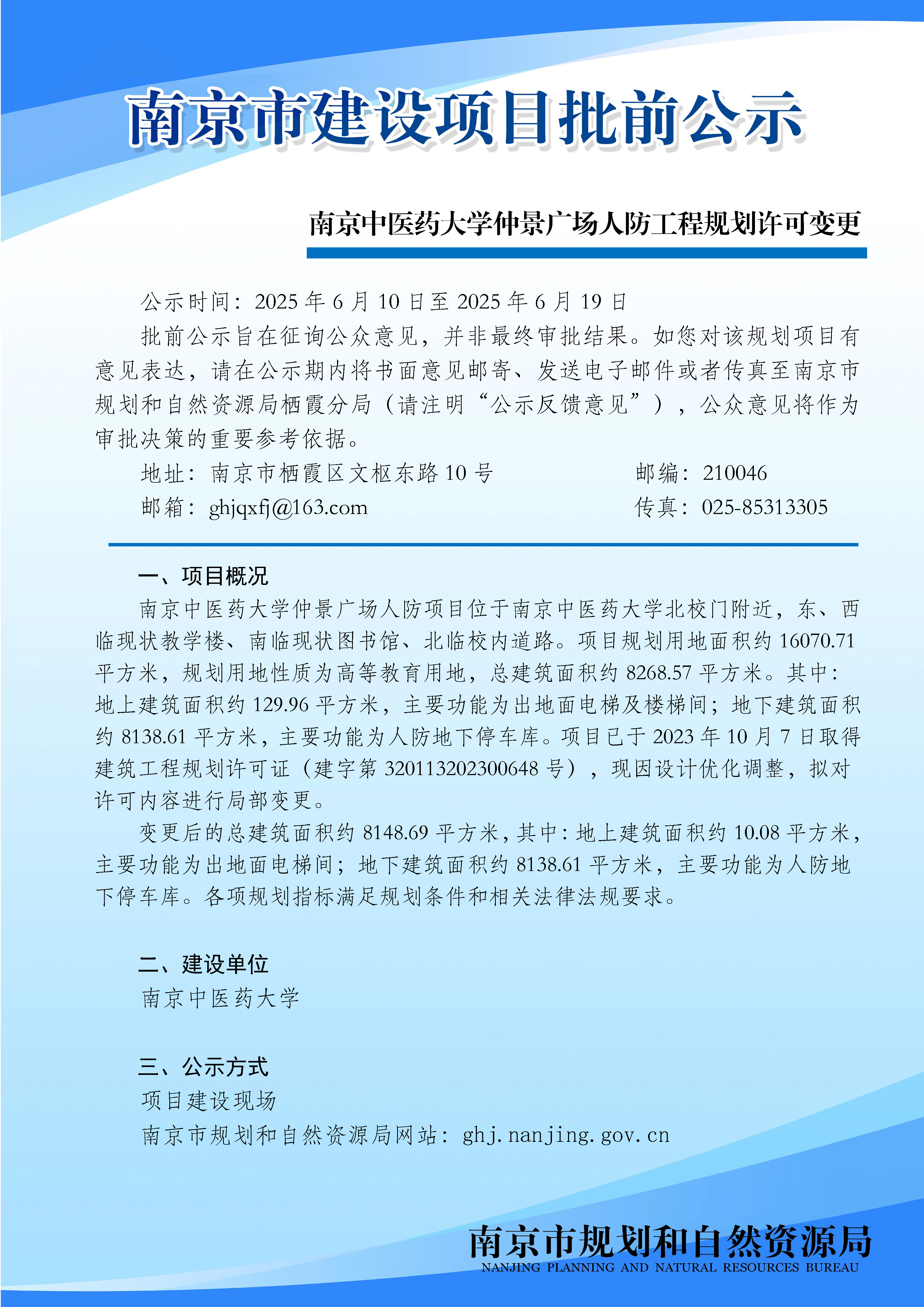 南京中医药大学仲景广场人防项目规划许可变更批前公示