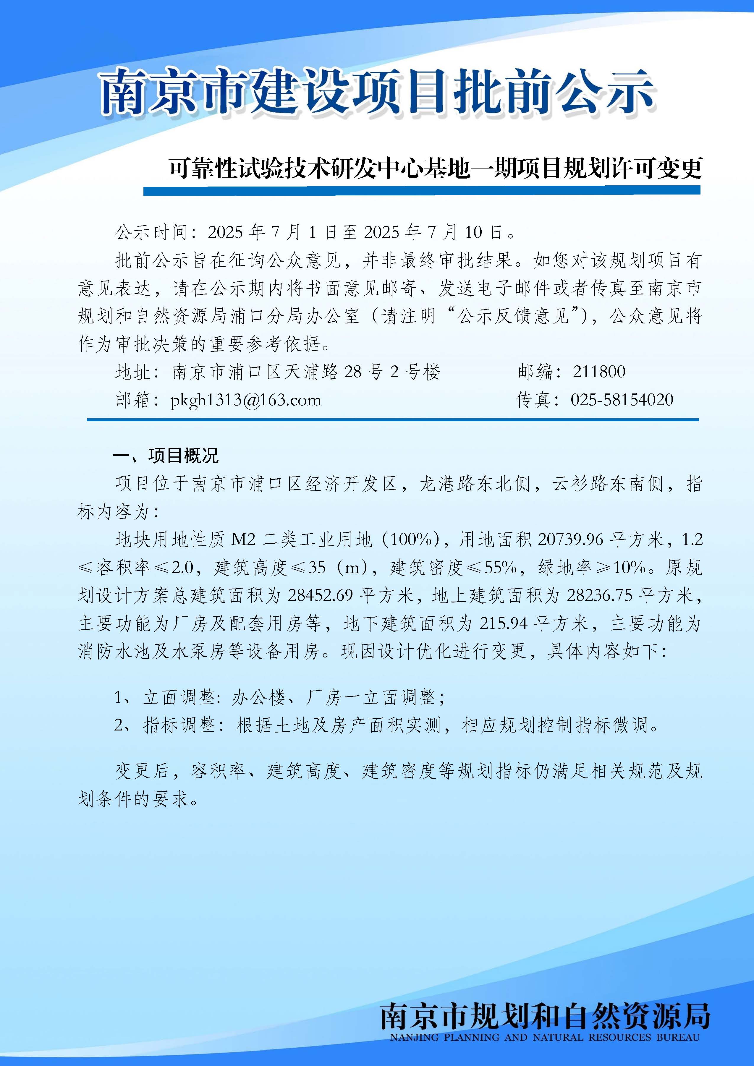 可靠性试验技术研发中心基地一期项目规划许可变更
