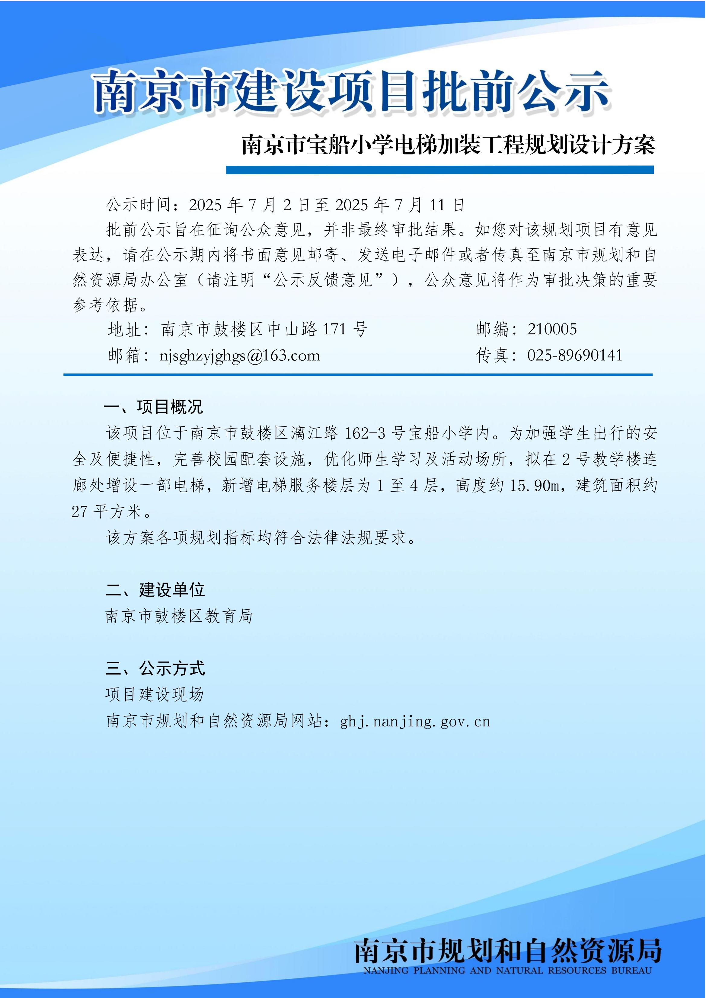 南京市宝船小学电梯加装工程规划设计方案批前公示