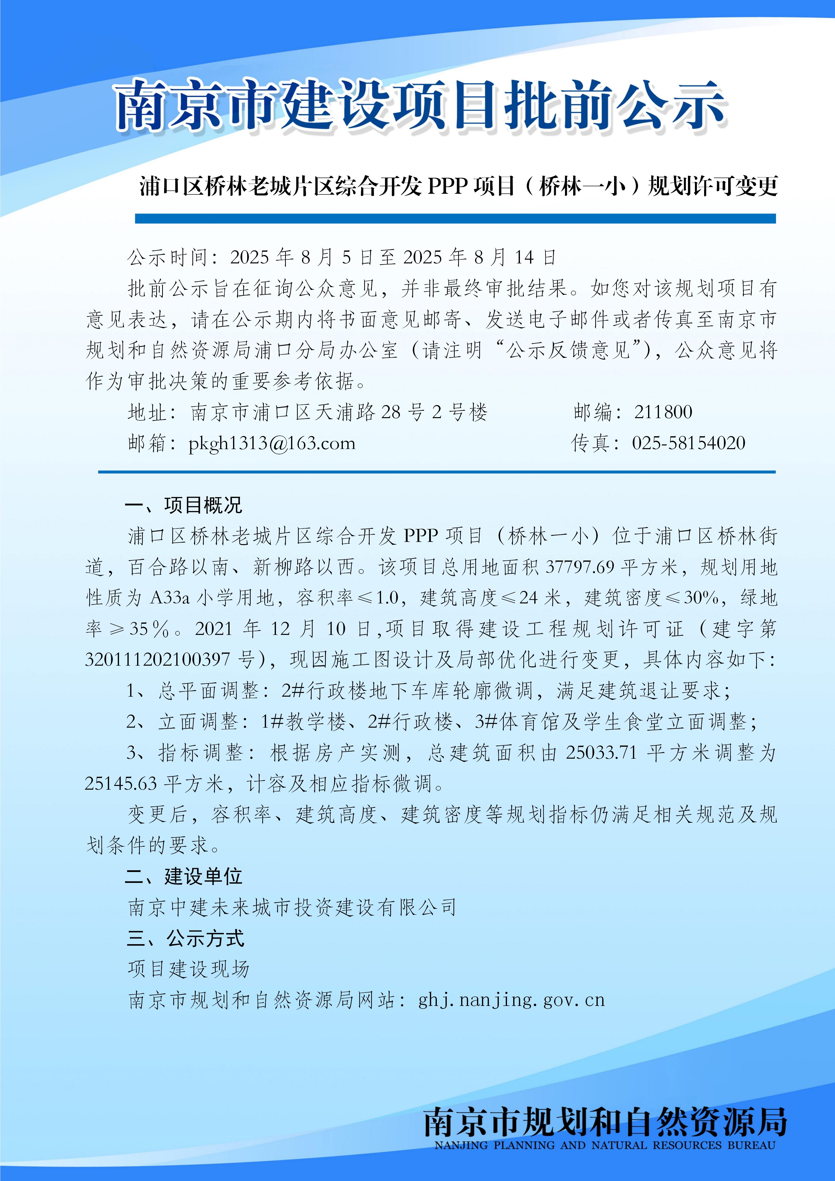 浦口区桥林老城片区综合开发PPP项目(桥林一小)规划许可变更批前公示