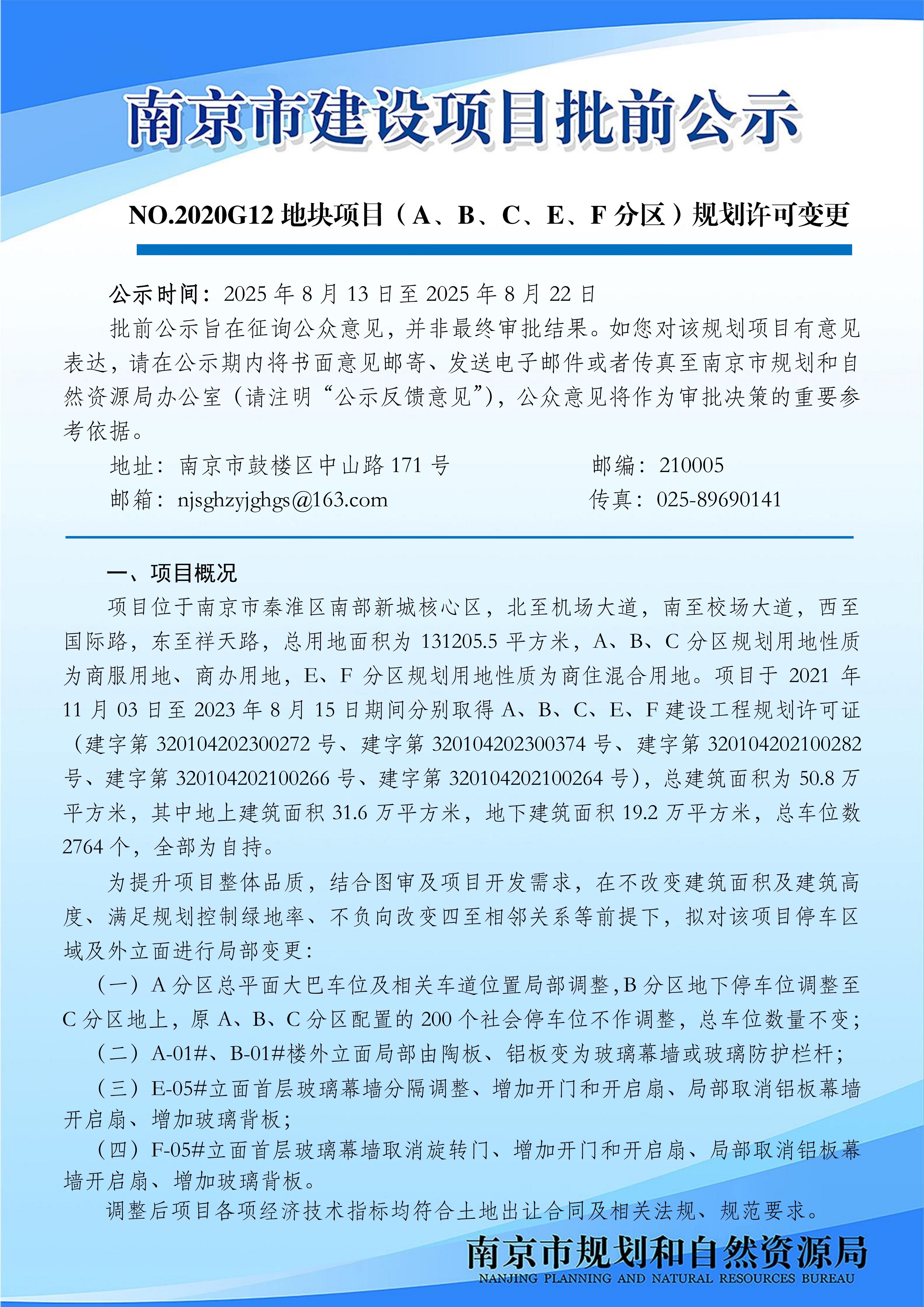 NO.2020G12地块项目(A、B、C、E、F分区)规划许可变更批前公示