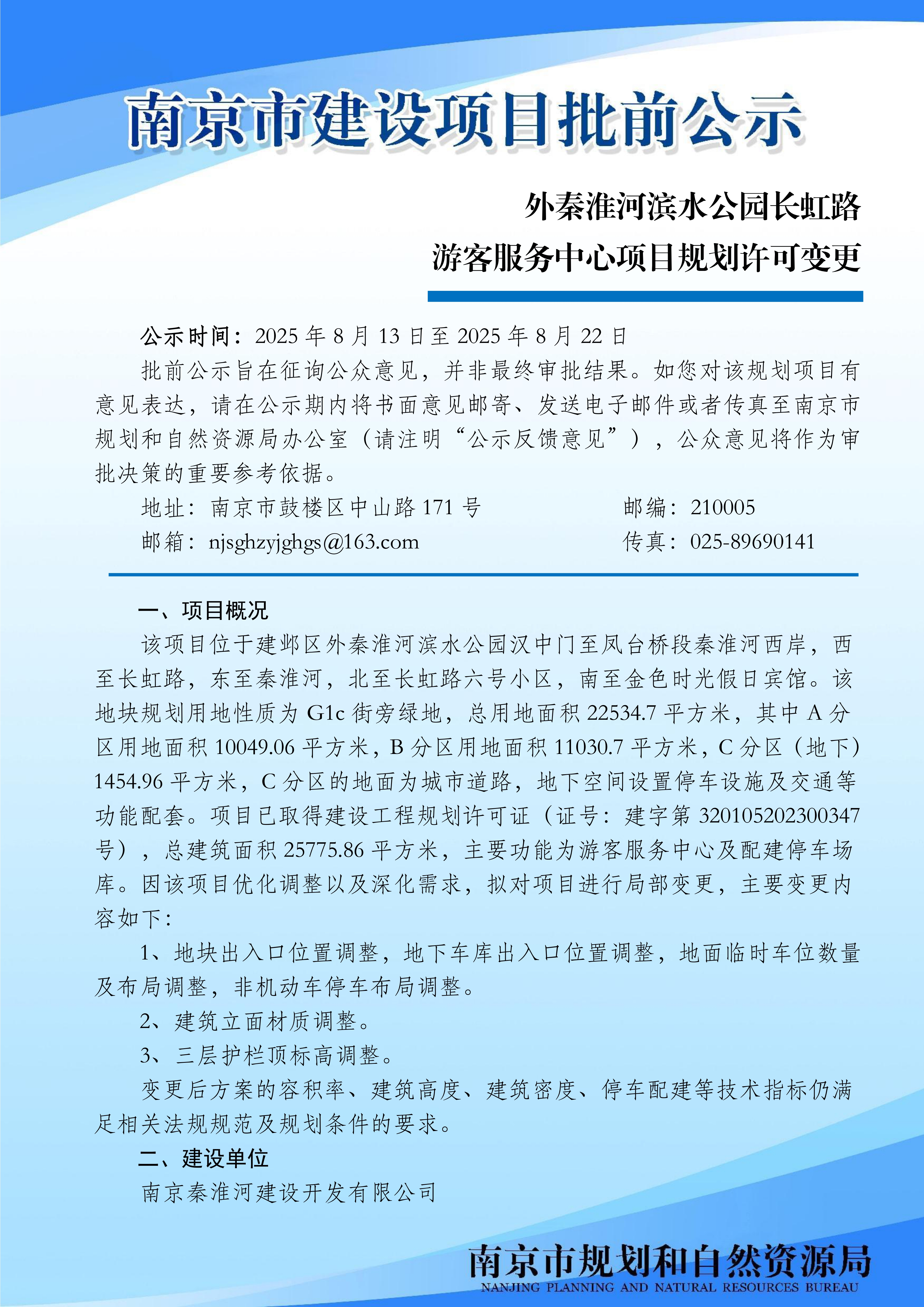 外秦淮河滨水公园长虹路游客服务中心项目规划许可变更批前公示