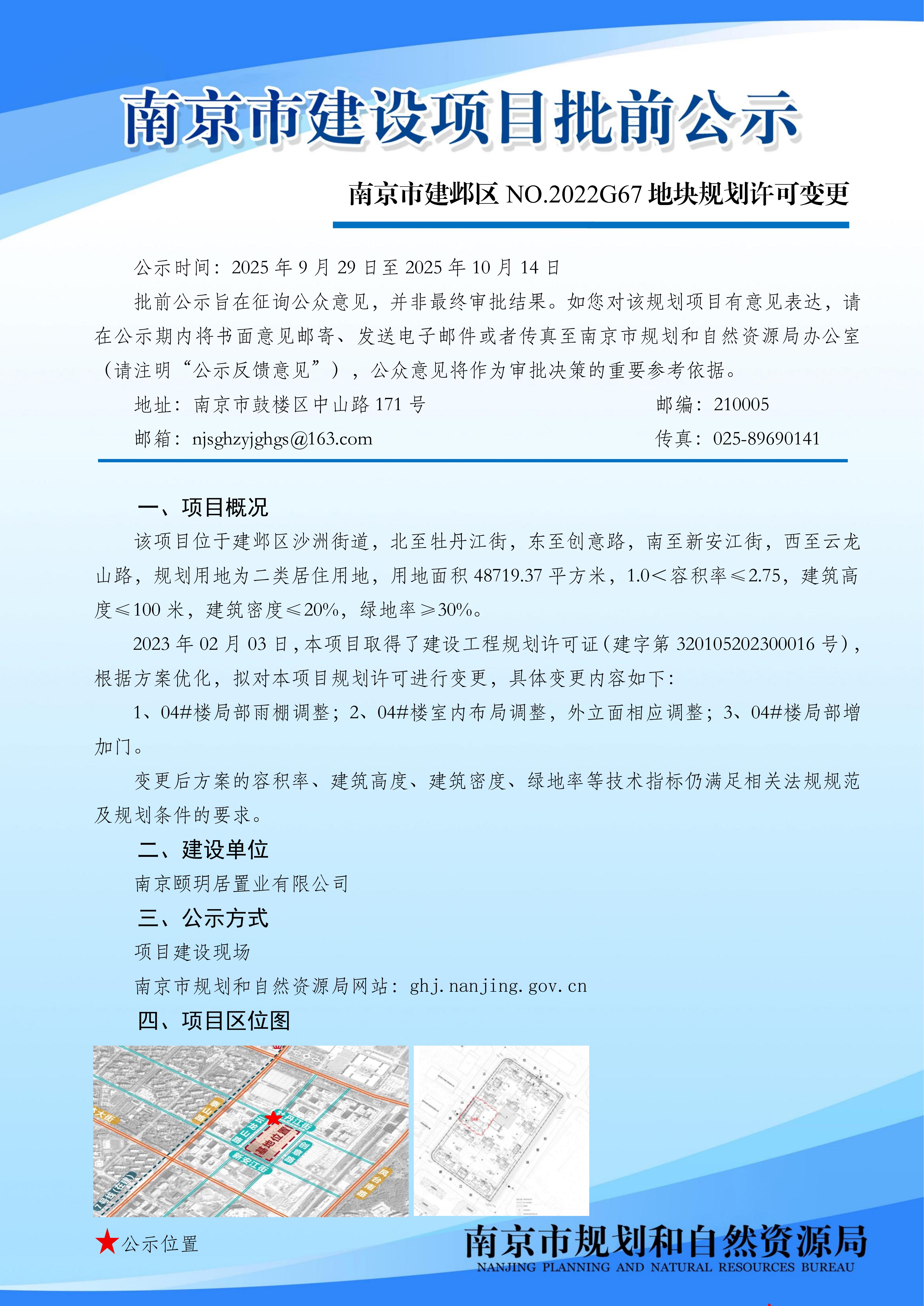 南京市建邺区NO.2022G67地块规划许可变更批前公示