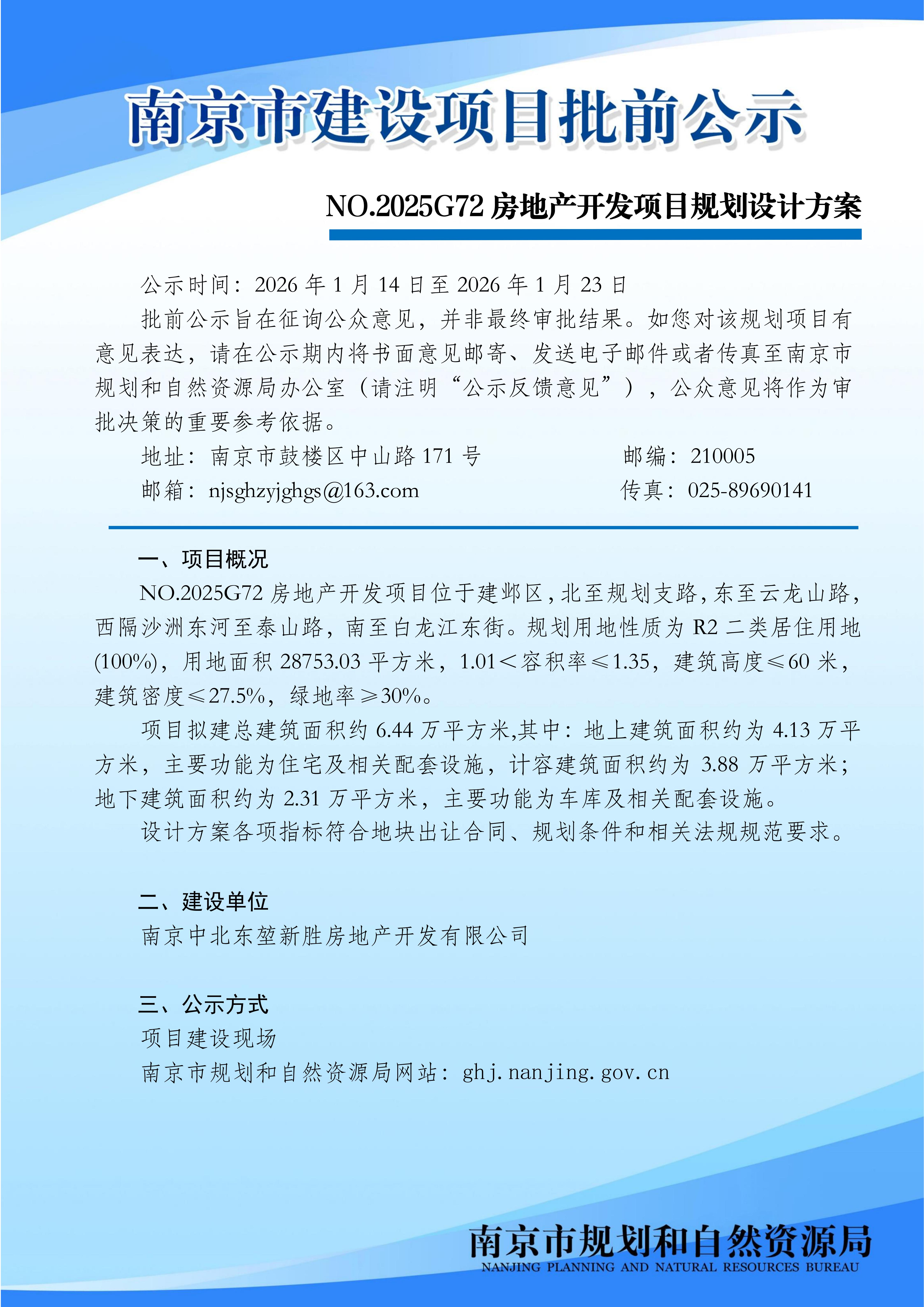 NO.2025G72房地产开发项目规划设计方案批前公示