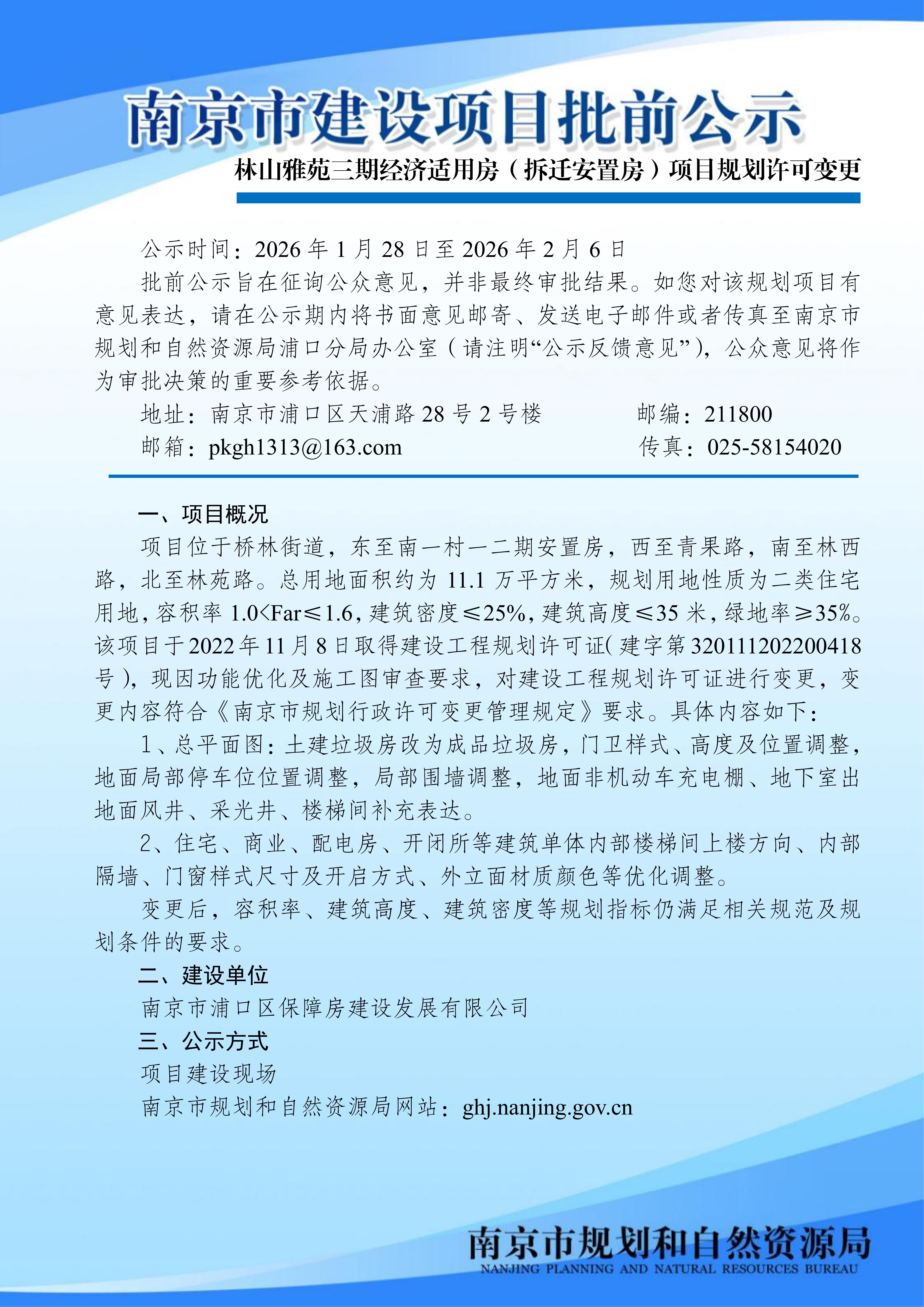 林山雅苑三期经济适用房(拆迁安置房)项目规划许可变更批前公示