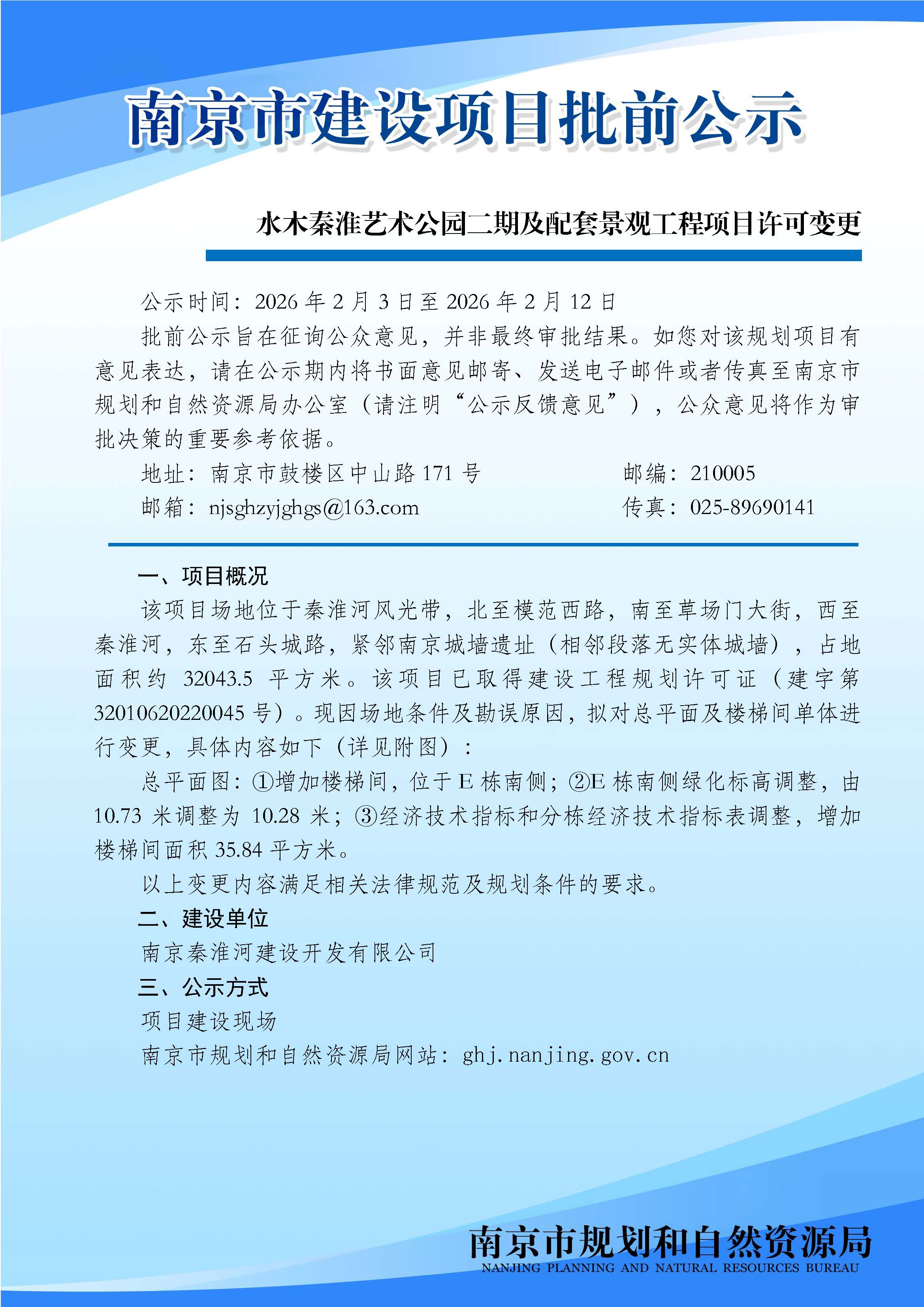 水木秦淮艺术公园二期及配套景观工程项目规划许可变更批前公示
