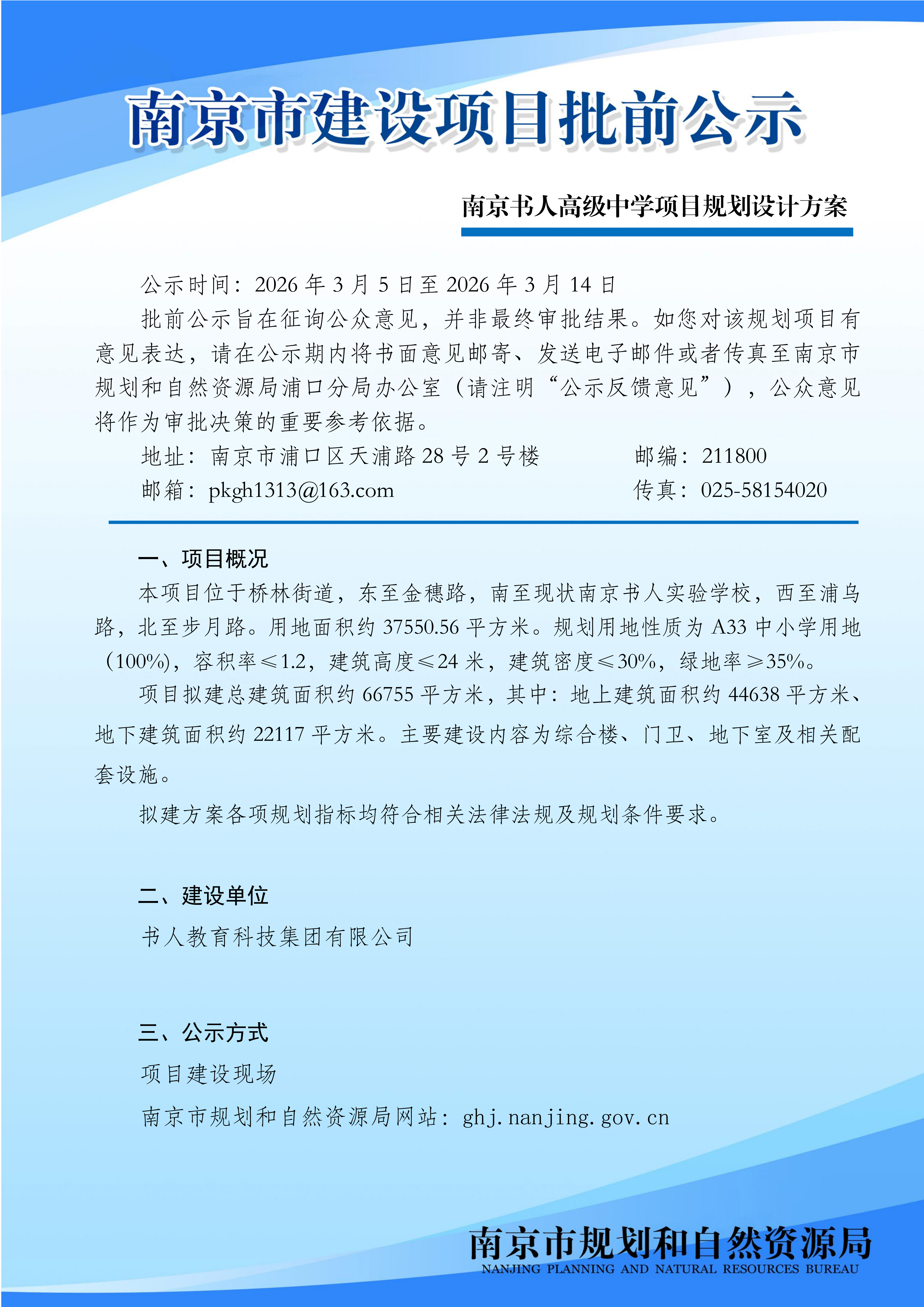 南京书人高级中学项目规划设计方案批前公示