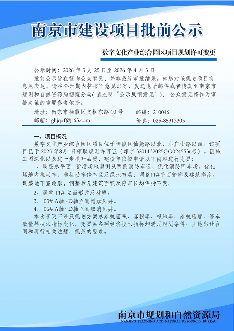 数字文化产业综合园区项目规划许可变更批前公示