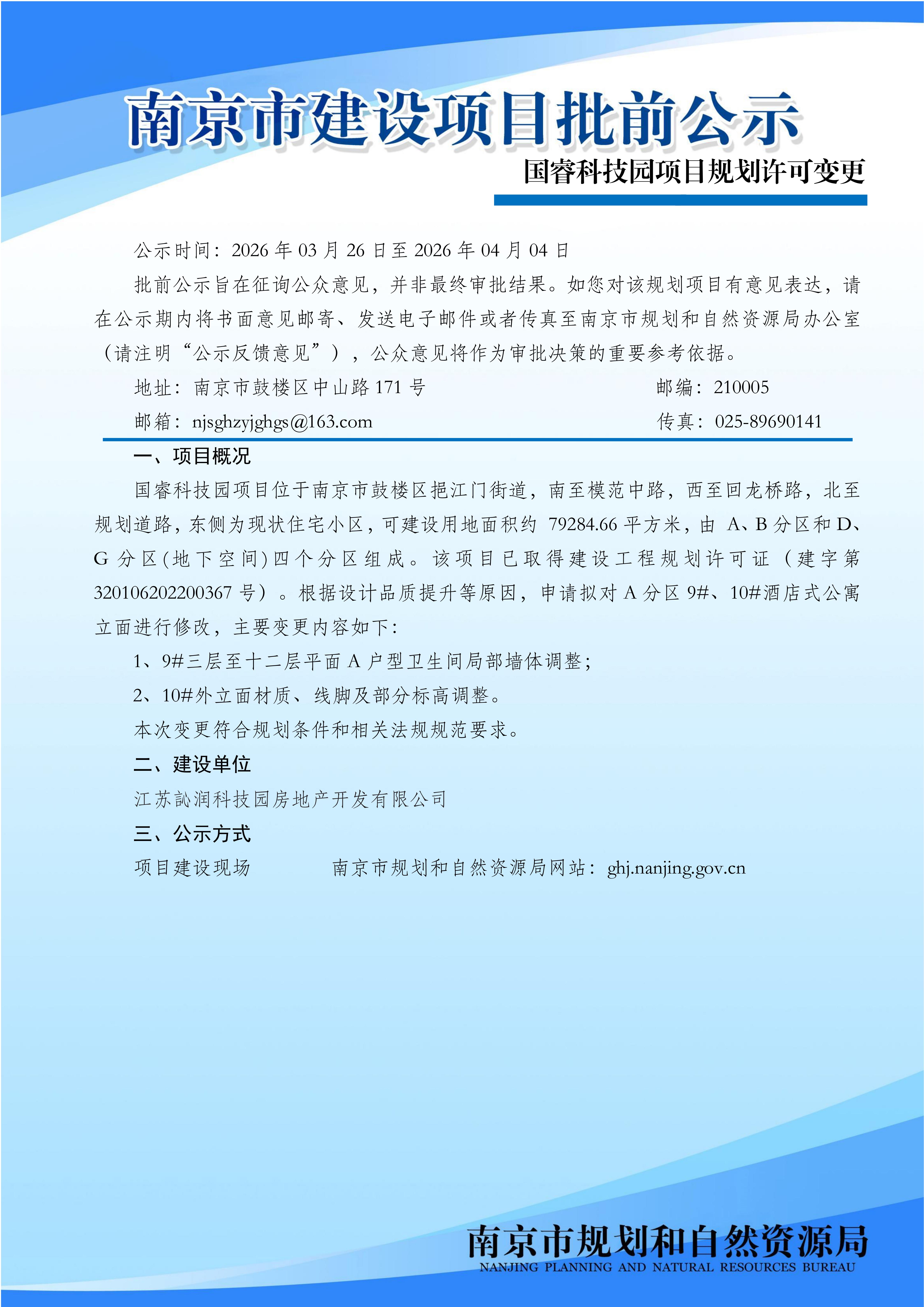 国睿科技园项目规划许可变更批前公示