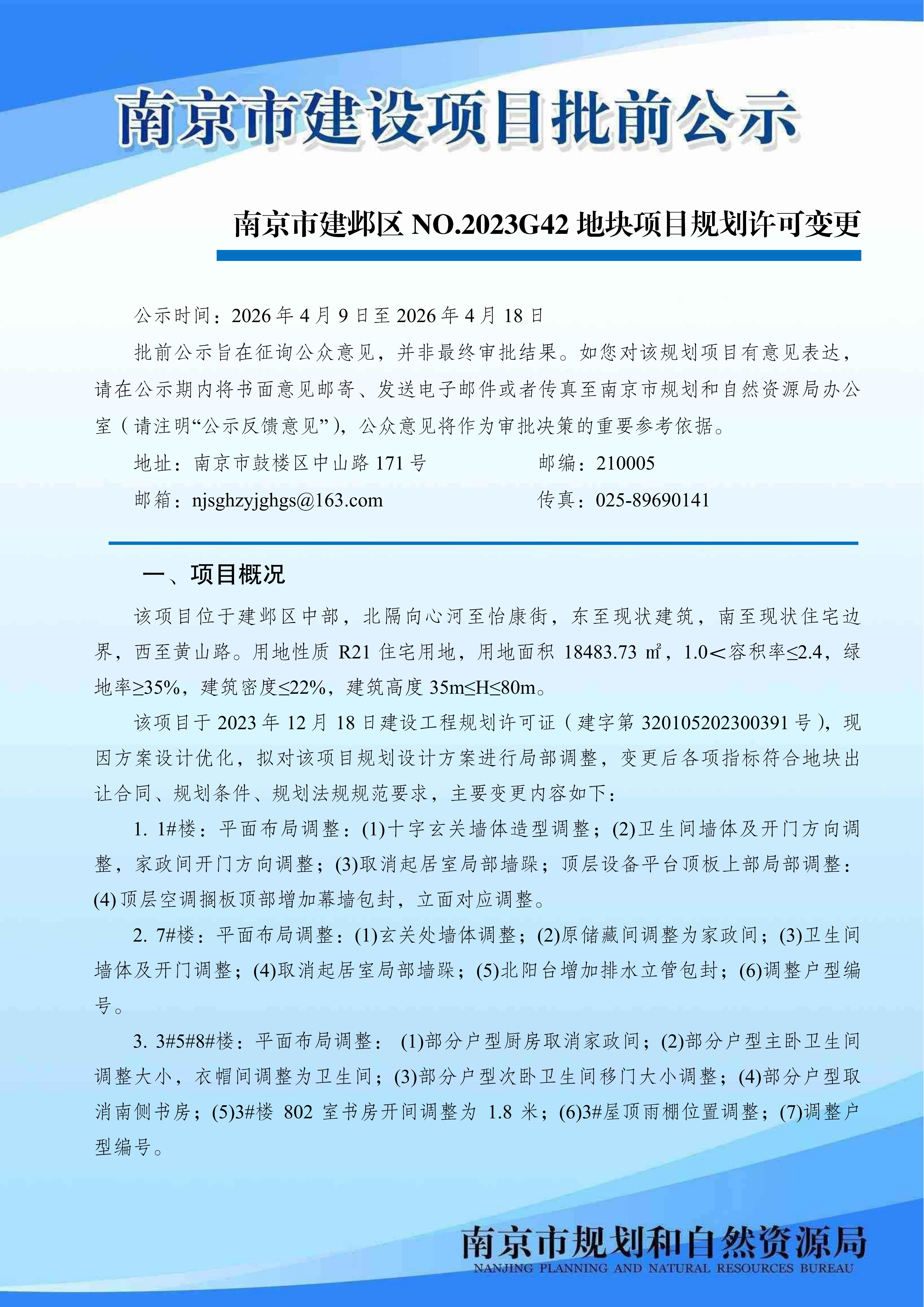 南京市建邺区NO.2023G42地块项目规划许可变更批前公示