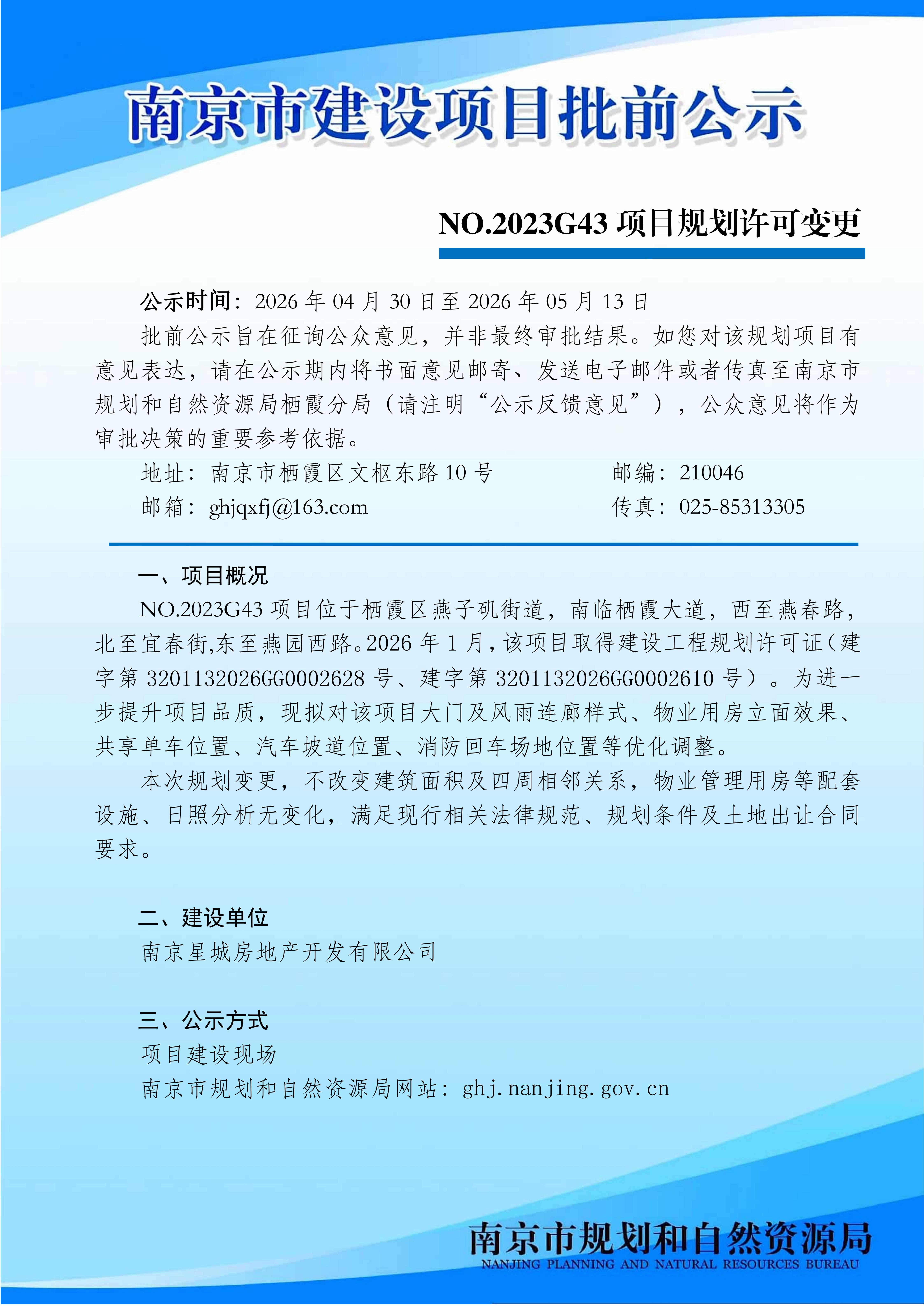 NO.2023G43项目规划许可变更批前公示